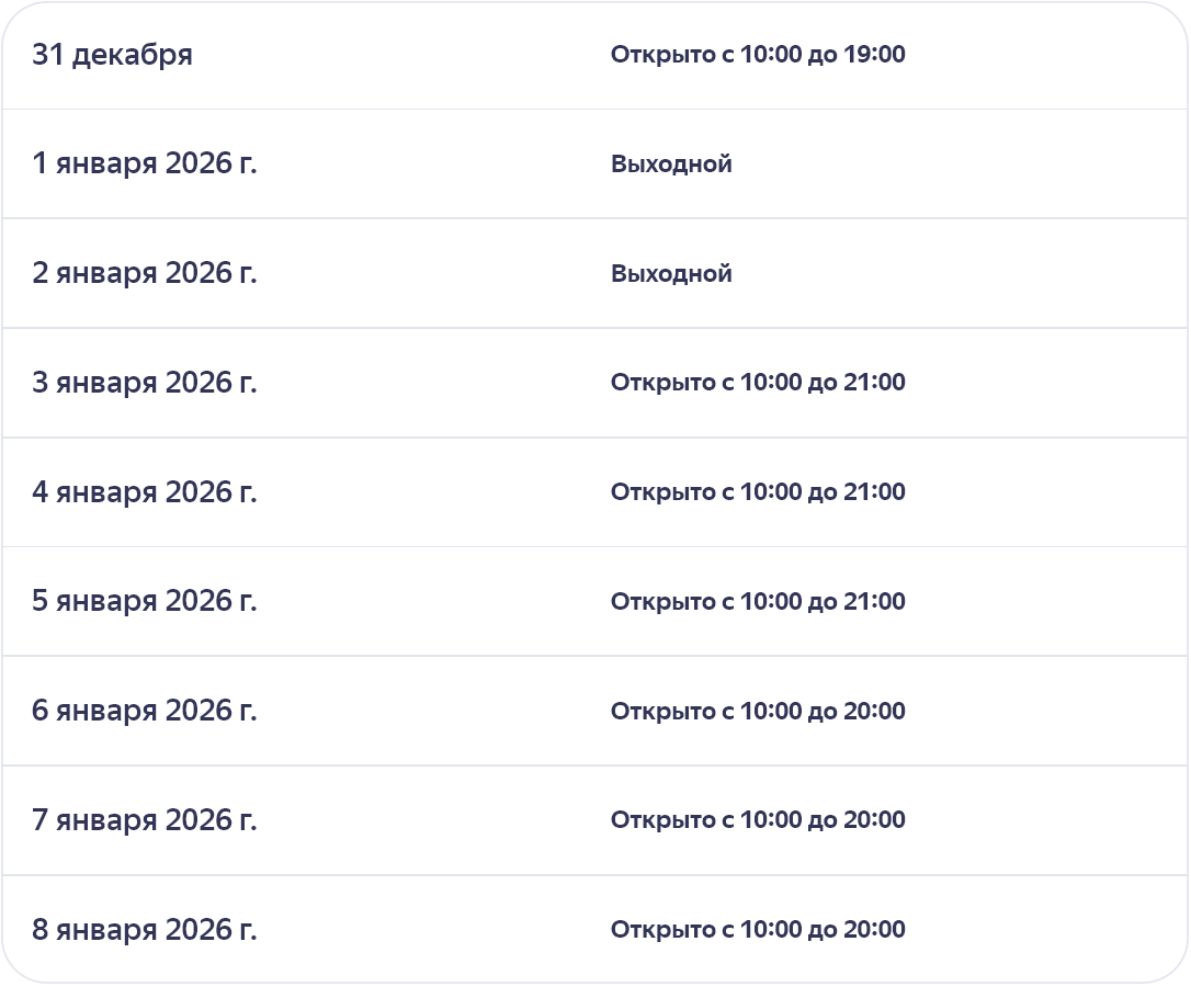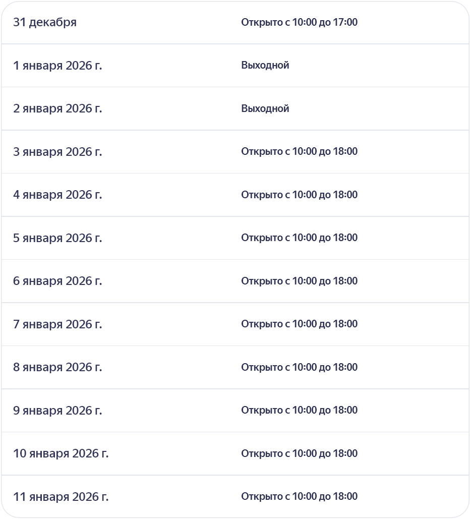 31.12.2025 - 11.01.2026 - Не работает