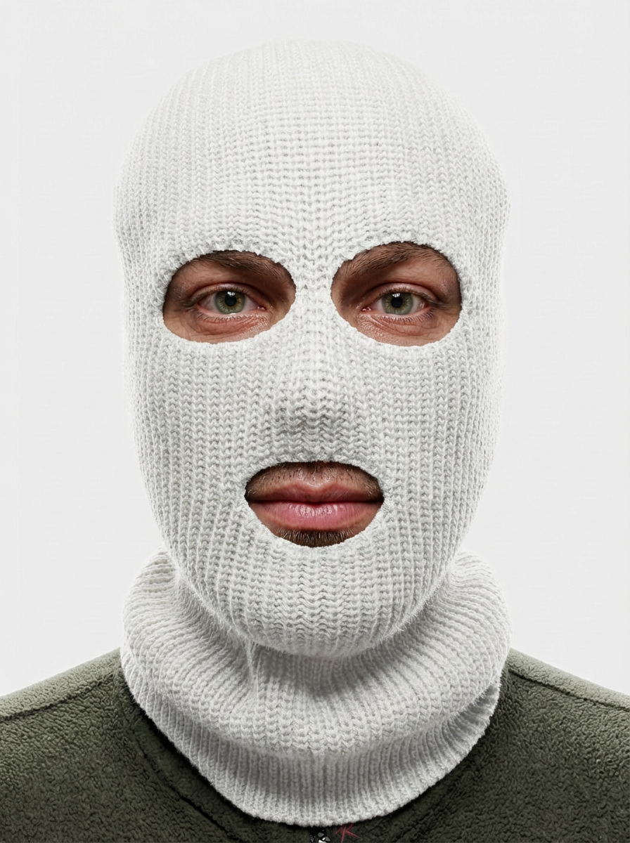 Маска белая полушерстяная, класс вязки 7-10 - защита головы и лица в холодных погодных условиях.