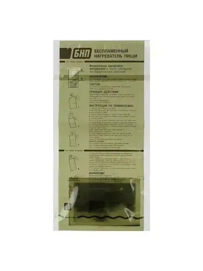 Беспламенный нагреватель пищи "БНП" предназначен для нагрева консервированных пайков и другой пищи без использования открытого огня. Нагревательный элемент увеличен на 50% в сравнении с первоначальным вариантом.