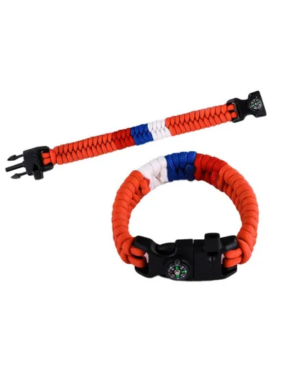 Браслет из паракорда с компасом, свистком и огнивом (триколор,оранжевый)