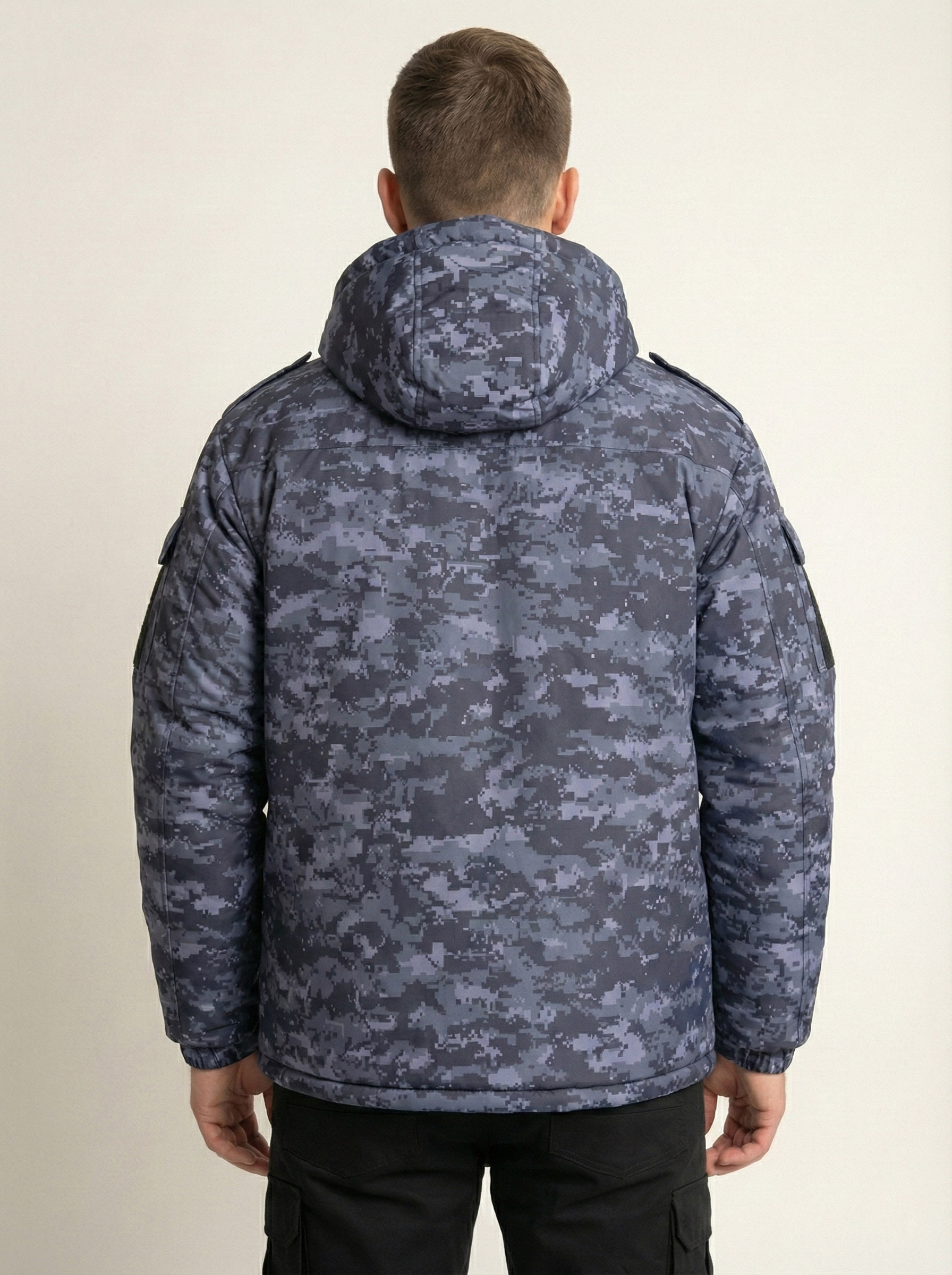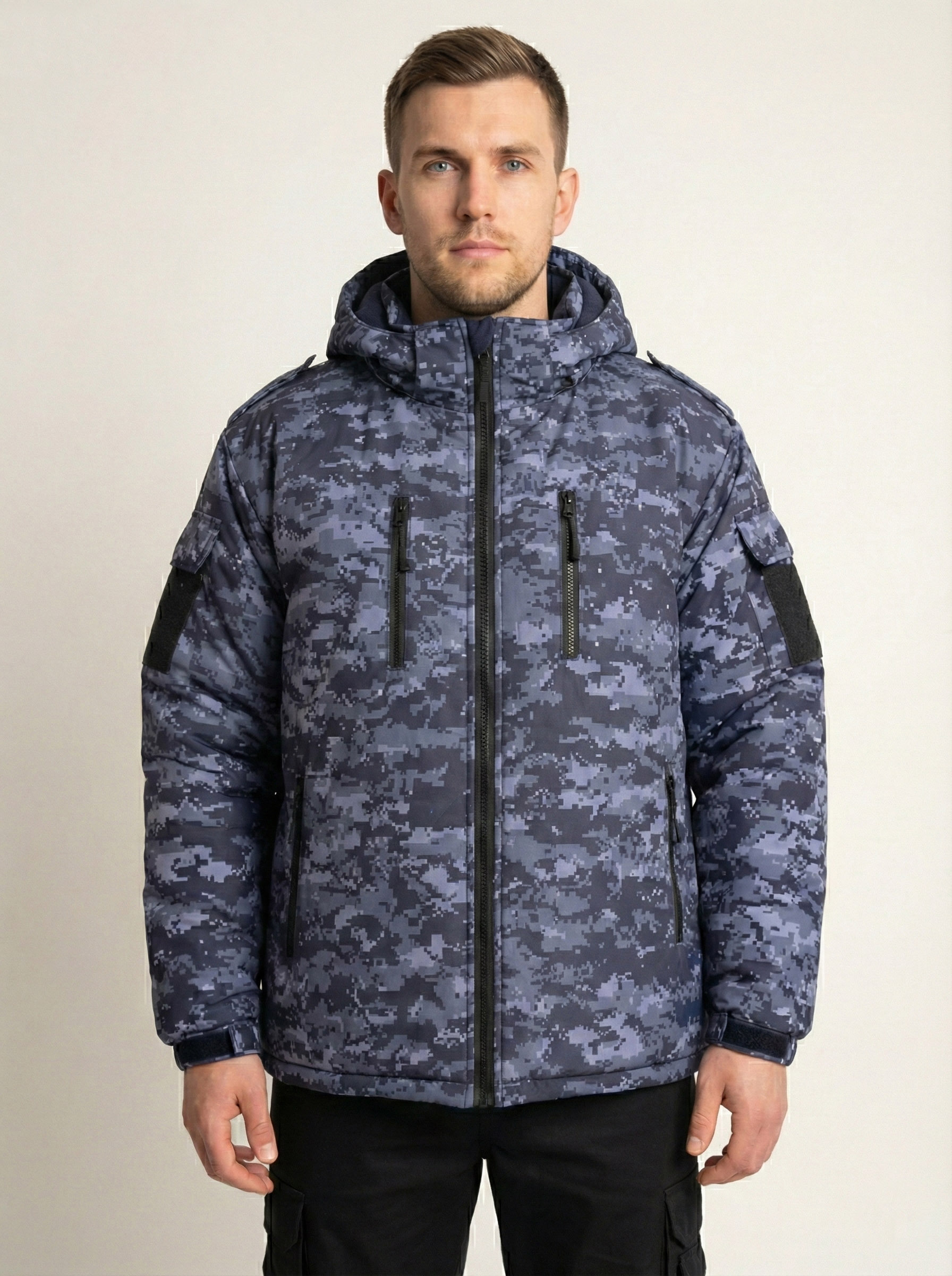 Зимний бушлат Росгвардии в расцветке синяя точка - тёплая уставная куртка для службы в холод, когда важно держать тепло, не продуваться и иметь всё нужное под рукой.