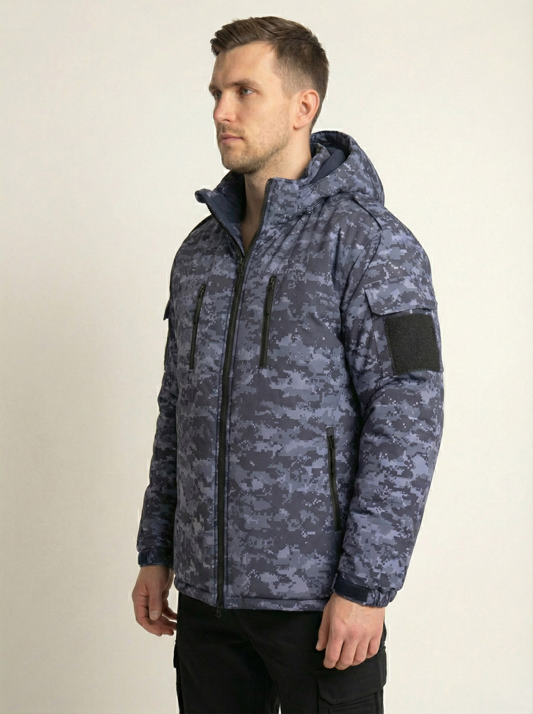 Этот бушлат подходит тем, кто ищет уставную зимнюю куртку Росгвардии в расцветке синяя точка для реальной службы. Он рассчитан на холодную погоду, сочетает защиту от ветра и осадков с утеплением и практичной конструкцией для ежедневных задач.
