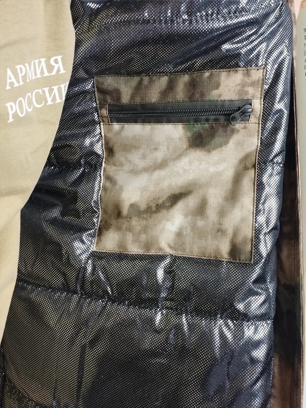 - Фольгированная подкладка помогает удерживать и отражать тепло тела внутрь бушлата.