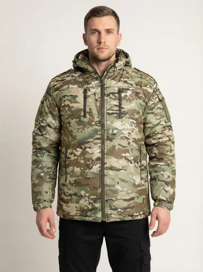 Зимний бушлат в расцветке мультикам создан для полевой службы в мороз, когда нужно сохранить тепло, подвижность и маскировку в загородных и лесных условиях.
