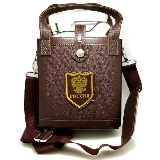 Стальная фляга в чехле из искусственной кожи, на ремешке.