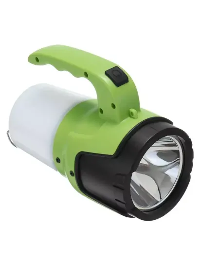 Фонарь оригинального дизайна с LED-светодиодом OSRAM мощностью 5 Вт в основном осветителе. В колбе-рассеивателе расположены восемь LED-светодиодов. Встроенный аккумулятор 1500 мА•ч. Можно использовать и как кемпинговый фонарь.