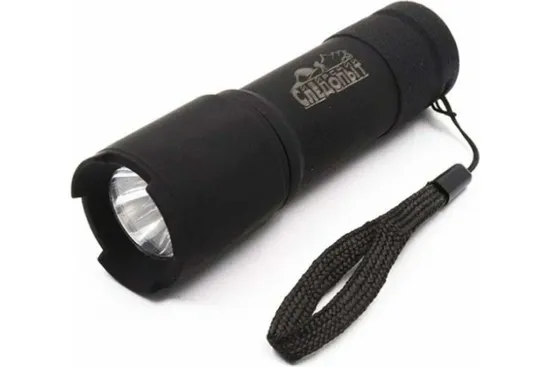 Небольшой яркий фонарь. Выполнен в корпусе из прочного обрезиненного пластика, удобно лежит в руке. Фиксированный отражатель, питание фонаря от трех батарей типа ААА.