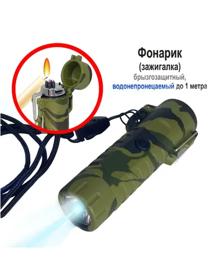 Фонарик USB аккумуляторный с дуговой зажигалкой