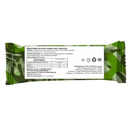 Состав: сухофрукты (чернослив, яблоко, изюм), сахар, арахис, фундук, регулятор кислотности – лимонная кислота