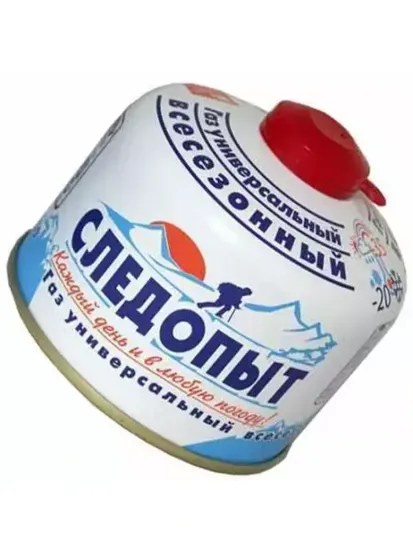 Газ всесезонный СЛЕДОПЫТ резьбового типа 230 гр. Газовый баллон с резьбовым клапаном, предназначены для питания газовых приборов с соответствующим типом подключения газового баллона. Топливная смесь создана на основе смешения 3-х базовых углеводородных газов: Пропана, Бутана и Изобутана. Особая пропорция смешения газов позволит Вам использовать этот баллон при температурах до -20С без дополнительного подогрева топливной смеси. Газовый баллон соединяется с прибором способом навинчивания до полного контакта в плоскости клапана баллона и прибора. Подключение газового баллона осуществлять в соответствии с инструкцией по эксплуатации газового оборудования. Предохранять от воздействия прямых солнечных лучей и нагревания свыше +40 С. В целях обеспечения безопасности, и в соответствии с требованиями ГОСТ Р 52087-2003, в состав газовой смеси включены ароматические добавки, способствующие своевременному обнаружению и выявлению утечек газа. Тип клапана: резьбовой (7/16"-28NS). Объём газового баллона: 520 куб.см. Количество газовой смеси: 230 гр. Состав газовой смеси: пропан - 20%, бутан - 55%, изобутан - 25%, примеси - 5% Диапазон рабочих температур: от -20C до +35C. Производитель: "СЛЕДОПЫТ".