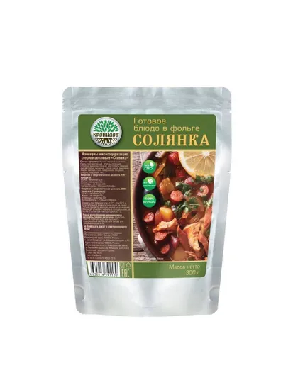 Состав: свинина, бекон сырокопченый, огурцы соленые, вода питьевая, сосиски, морковь свежая, картофель свежий, лук репчатый сушеный, томат-паста, маслины, лимон свежий, соль поваренная пищевая, специи, лавровый лист.