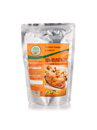 Состав: мясо цыпленка (филе), горошек зеленый, кукуруза сладкая, перец сладкий, лук репчатый, морковь свежая, крупа рисовая, соль поваренная пищевая, чеснок сушеный, перец черный молотый
