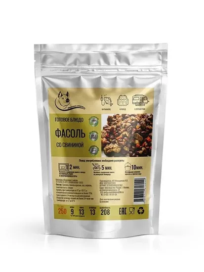 Фасоль со свининой. Состав: свинина, фасоль красная, лук, морковь, томатная паста, специи.