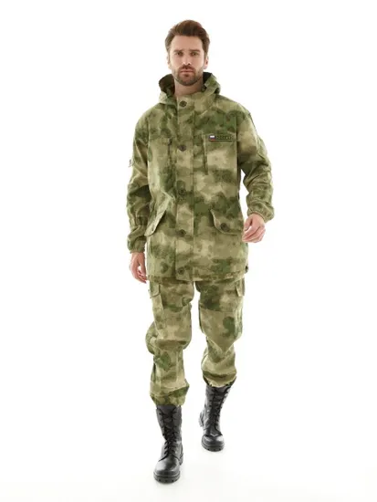 Костюм Горка 5 ЛЕТНИЙ выполнен из основной ткани Rip Stop с водоотталкивающей пропиткой. Полуприлегающего силуэта, при помощи резинок в области талии, на рукавах и на брюках. Оснащен центральной застежкой на молнии и защищающей от ветра планкой на пуговицах. Капюшон с планкой и шнуром для утяжки. Для улучшения износостойкости предусмотрено усиление локтевой части рукава, коленной и задней части брюк. На куртке предусмотрены 3 вида карманов. На передней части куртки в области груди 2 кармана в рамке на молнии (для документов и мелких предметов) и внизу 2 накладных кармана с клапаном. Накладной карман с клапаном на рукавах. Брюки с поясом на резинке и дополнительно с подтяжками, с центральной застежкой на молнии, пуговицах и гульфике. 2 кармана на молнии в боковом шве, 2 накладных кармана на задней части брюк, 2 боковых накладных кармана с клапаном. По нижней части брюк предусмотрен манжет с резинкой и ветрозащитой.