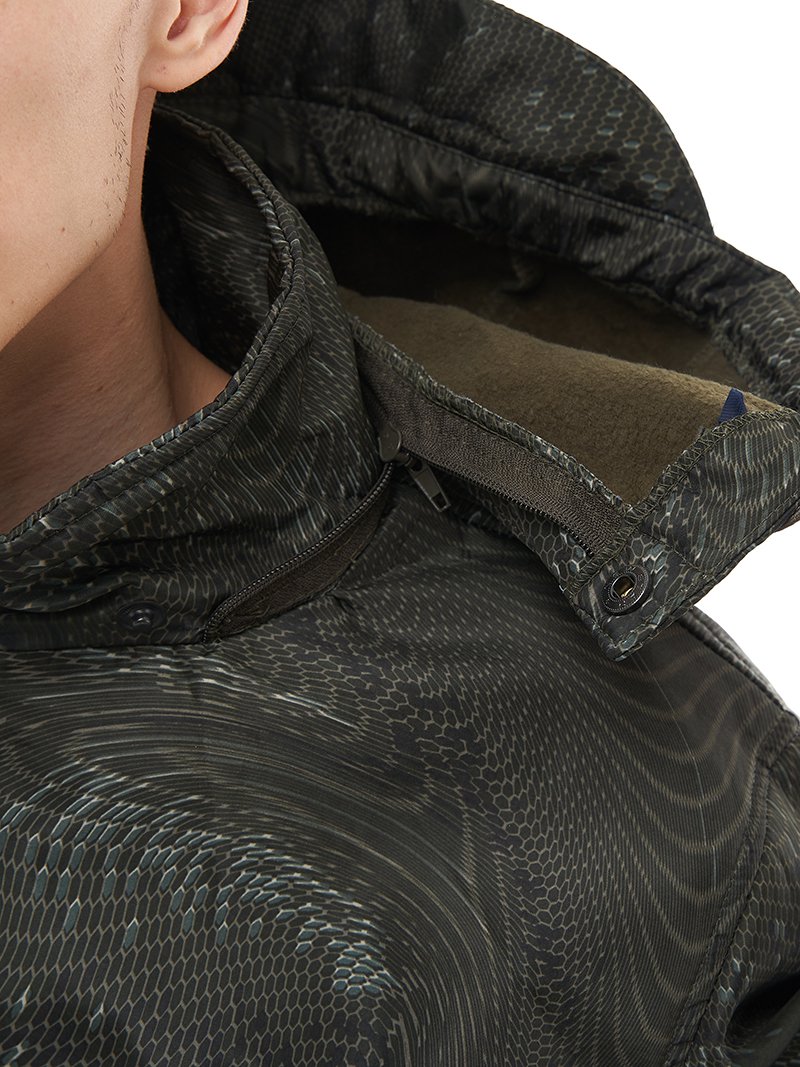 - Воротник-стойка с убирающимся капюшоном.