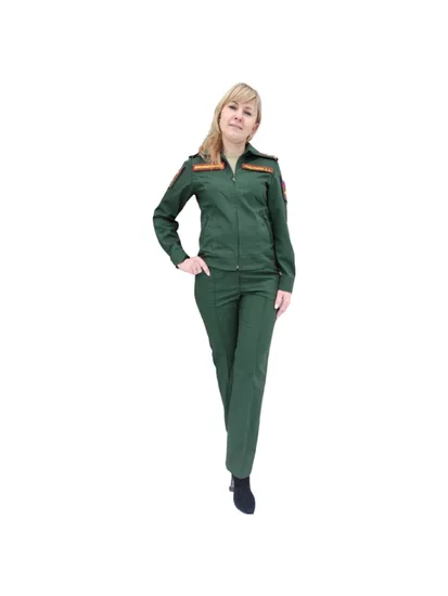 Костюм офисный женский Министерства обороны длинный рукав зеленого цвета для офицеров армии РФ и курсантов военных училищ.