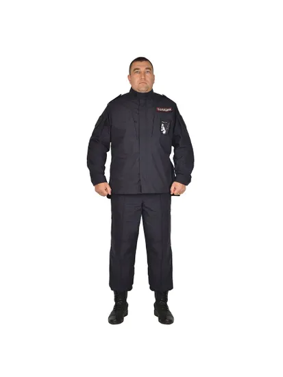 Сторона текстильной застежки с крючками соответствует контуру нашивки «ПОЛИЦИЯ» (110х30 мм) . Воротник-стойка с цельнокроеной патой, застегивающейся на текстильную застежку.