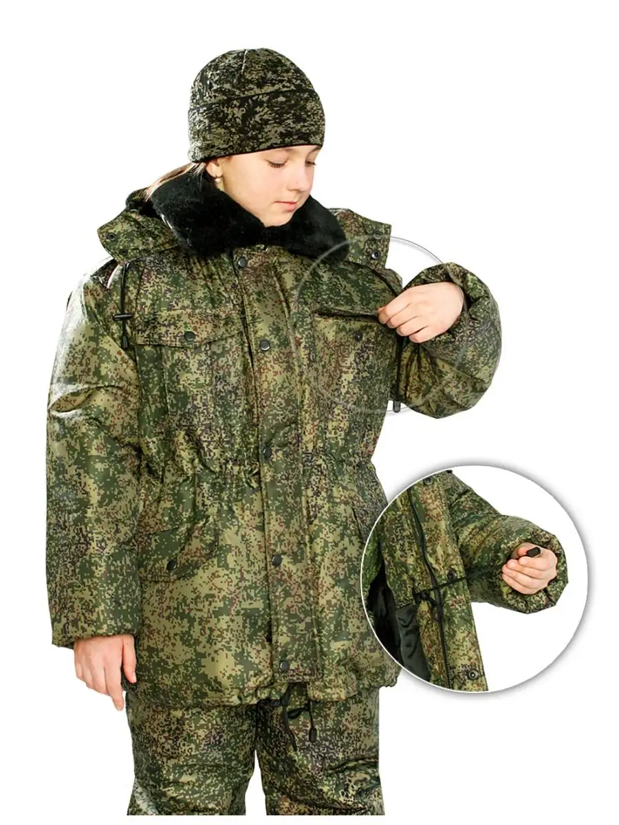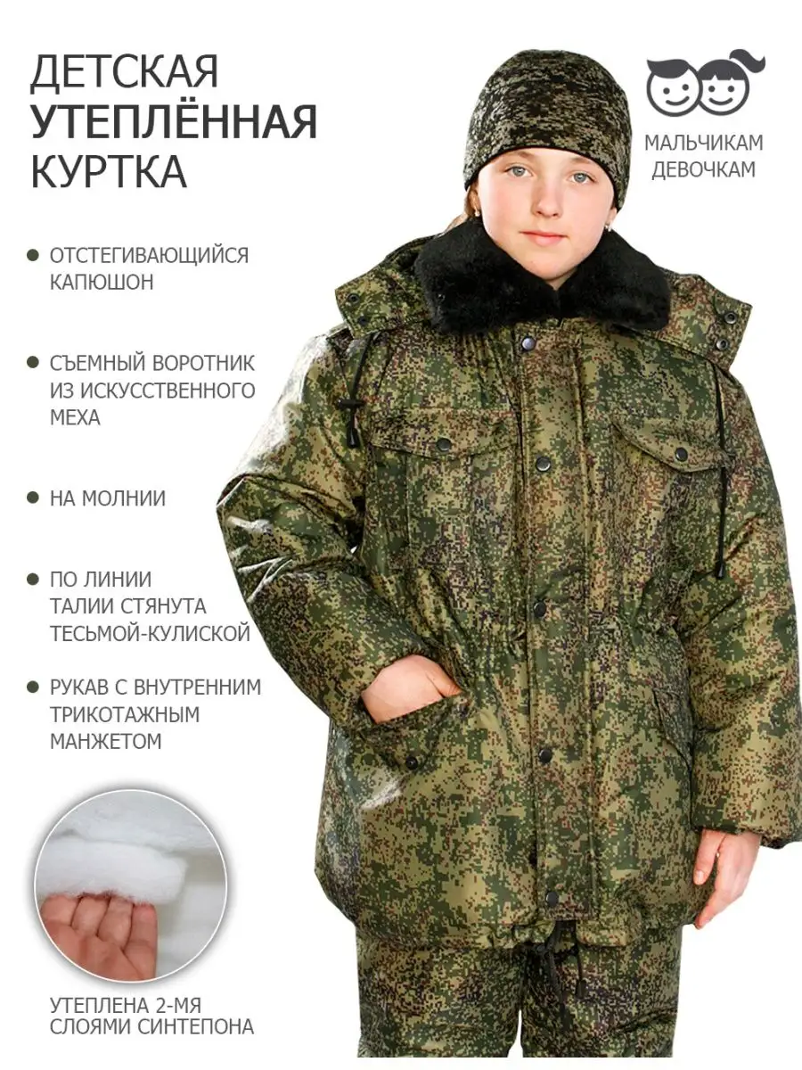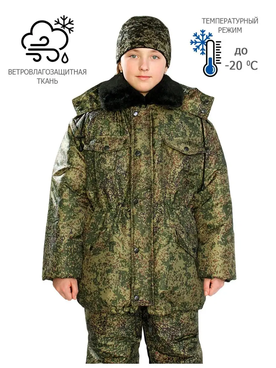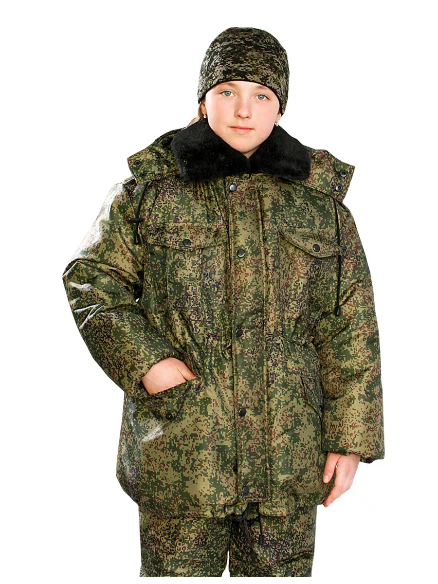 Детская зимняя куртка «Кадет» в расцветке «цифра» из ткани Oxford с утеплением в два слоя синтепона. Соответствует ГОСТ 29335-92.