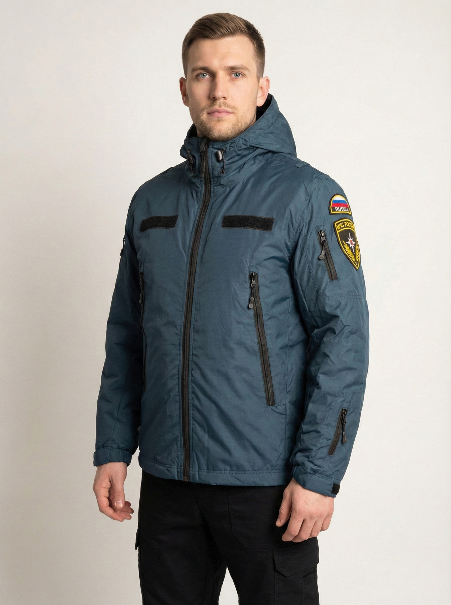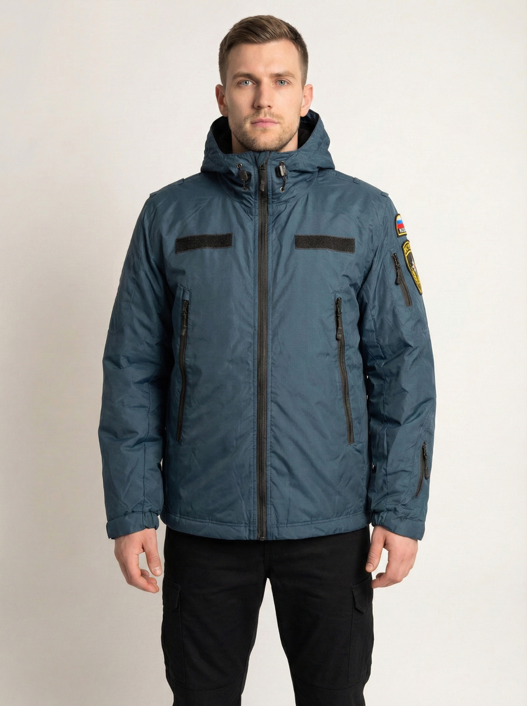Удлинённая куртка МЧС с шевронами - форменный вариант для холодной погоды, рассчитанный на служебные выезды и работу на улице, где важны защита от ветра, удобные карманы и аккуратная посадка.