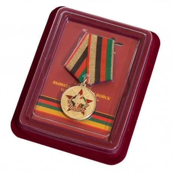 Латунная медаль, в форме круга, диаметром 32 мм. Колодка пятиугольная, покрыта муаровой лентой. Для крепления к одежде имеется булавочный зажим. В набор входит солидный футляр и чистый бланк удостоверения, который вы можете заполнить согласно вашим требованиям.