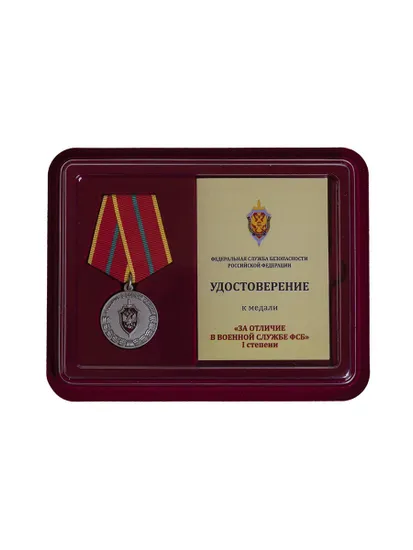 Медаль ФСБ РФ За отличие в военной службе I степени в футляре с удостоверением
