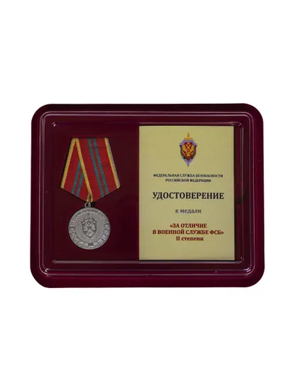 Медаль ФСБ РФ За отличие в военной службе II степени в футляре с удостоверением