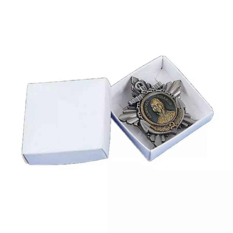 Представленная копия представляет собой штраловую звезду, якорь с цепью и барельефное изображение Адмирала Ушакова и соответствующая надпись. Изготовлена копия ордена Ушакова 1 степени из латуни. Крепление – на штифте с гайкой.