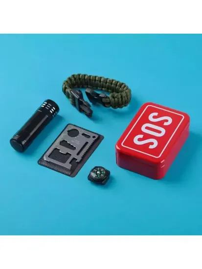 Набор для выживания 4в1 (фонарь, карта для выживания, паракорд, компас) 5087953