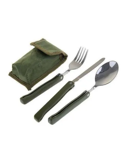 Набор ложка,вилка,нож в оливковом чехле