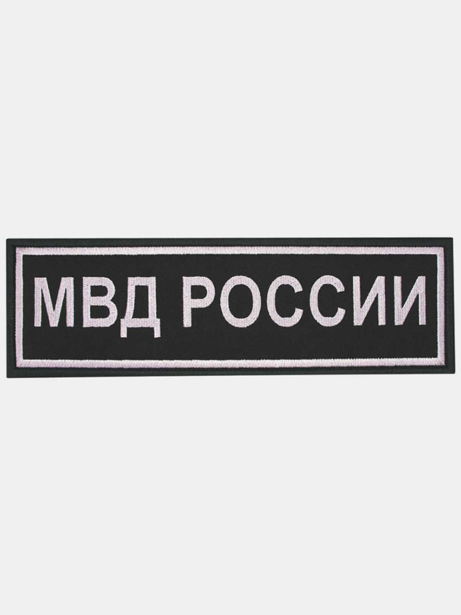 Нашивка на спину "МВД РОССИИ" в серо-чёрном исполнении - строгий и аккуратный элемент форменной одежды, хорошо читаемый на дистанции.