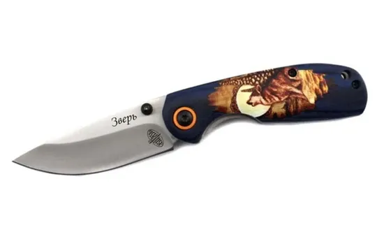 Компактный складной походный нож с изображением на рукояти прекрасно подойдет в качестве городского EDC ножа. Небольшие размеры позволят удобно разместить нож в кармане брюк, на поясе или в дамской сумочке.
