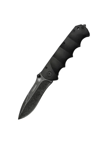 Гранит это универсальный складной нож. Широкий клинок имеет легкую рекурву, что улучшает режущие свойства. Нож сделан из прочной нержавеющей стали, которая хорошо держит заточку, устойчива к повреждениям. Гранит легко раскрывается одной рукой с помощью шпенька для большого пальца. Алюминиевая рукоять прочна и легка, обладает глубокими выемками под каждый палец, это гарантирует максимально надежный и удобный хват. Гранит снабжен клипсой и стеклобоем.