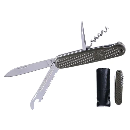 Отличный военный карманный нож, используемый в Вооруженных силах Германии (Бундесвер). Продукт немецкой компании Mil-Tec®. Карманный нож, созданный по образцу армейского, первоначально производился швейцарской Victorinox®. Изготовлен из высококачественной нержавеющей стали. Прочная конструкция и точное исполнение, надежность. Набор практичных инструментов и множество функций в одном полезны и незаменимы во многих ситуациях. Функции: острый нож, двухрядная пила по дереву и пластику, пилка для ногтей, открывалка для консервных банок и бутылок, плоская отвертка, шило и штопор. Компактные размеры стандартного армейского карманного ножа поместятся в любой карман. Нескользящие пластиковые накладки на ручки обеспечивают надежный захват.