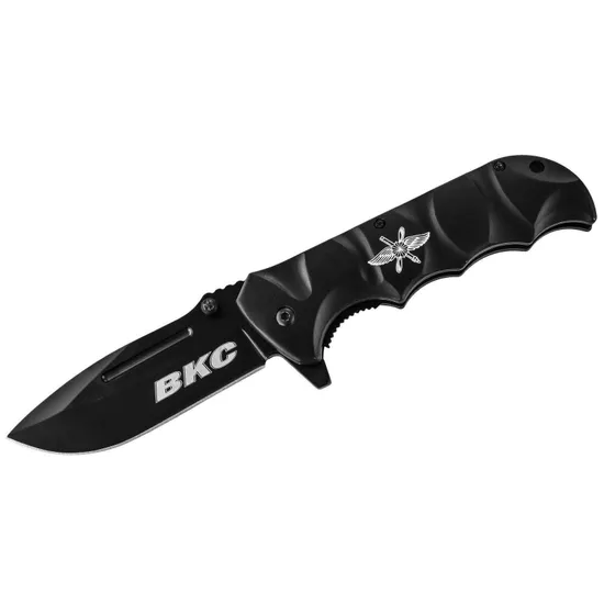 Армейский складной нож “ВКС”. Элитная модель на базе новейшего ножа (обр. 2019 г.) Корпуса Морской Пехоты США с нанесением символики Российских Воздушно-космических сил. Незаменим для решения любых задач - от боевых до бытовых. Изготовлен из стали марки 440С.