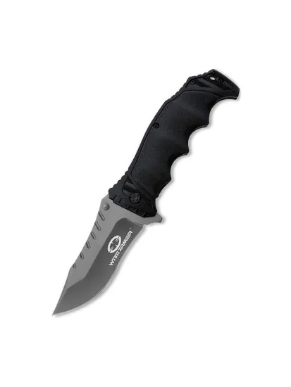 Складной тактический нож. Клинок из стали 440 выгодно совмещает твердость, устойчивость заточки, а также коррозионную стойкость. Для большей эффективности он имеет специальное защитное покрытие. Нож легко открыть одной рукой при помощи шпенька или флиппера. Резинопластиковая рукоять с выемками для каждого пальца удобна и надежна. Клипса облегчает ношение и обеспечивает возможность быстрого извлечения из кармана. Нож укомплектован чехлом из нейлона с петлей для ношения на ремне.