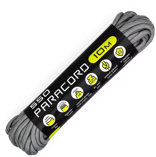 - Паракорд 550 — это семь надёжных нитей в сердечнике, стопроцентный нейлон и высокая устойчивость к гниению и выцветанию. Стандартный диаметр 4мм идеально подходит для плетения браслетов и темляков, а разрывная нагрузка в 250кг позволяет спокойно доверить этому паракорду страховку снаряжения и оружия. Из этого шнура получаются прекрасные ошейники для домашних питомцев, надёжные подвесы для гамаков и многое другое.