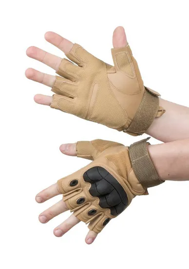 • Тактические беспалые перчатки хорошо защищают руку и не стесняют движений.