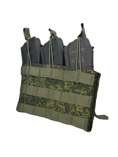 Подсумок состоит из трех отделений, каждое из которых вмещает по одному магазину.