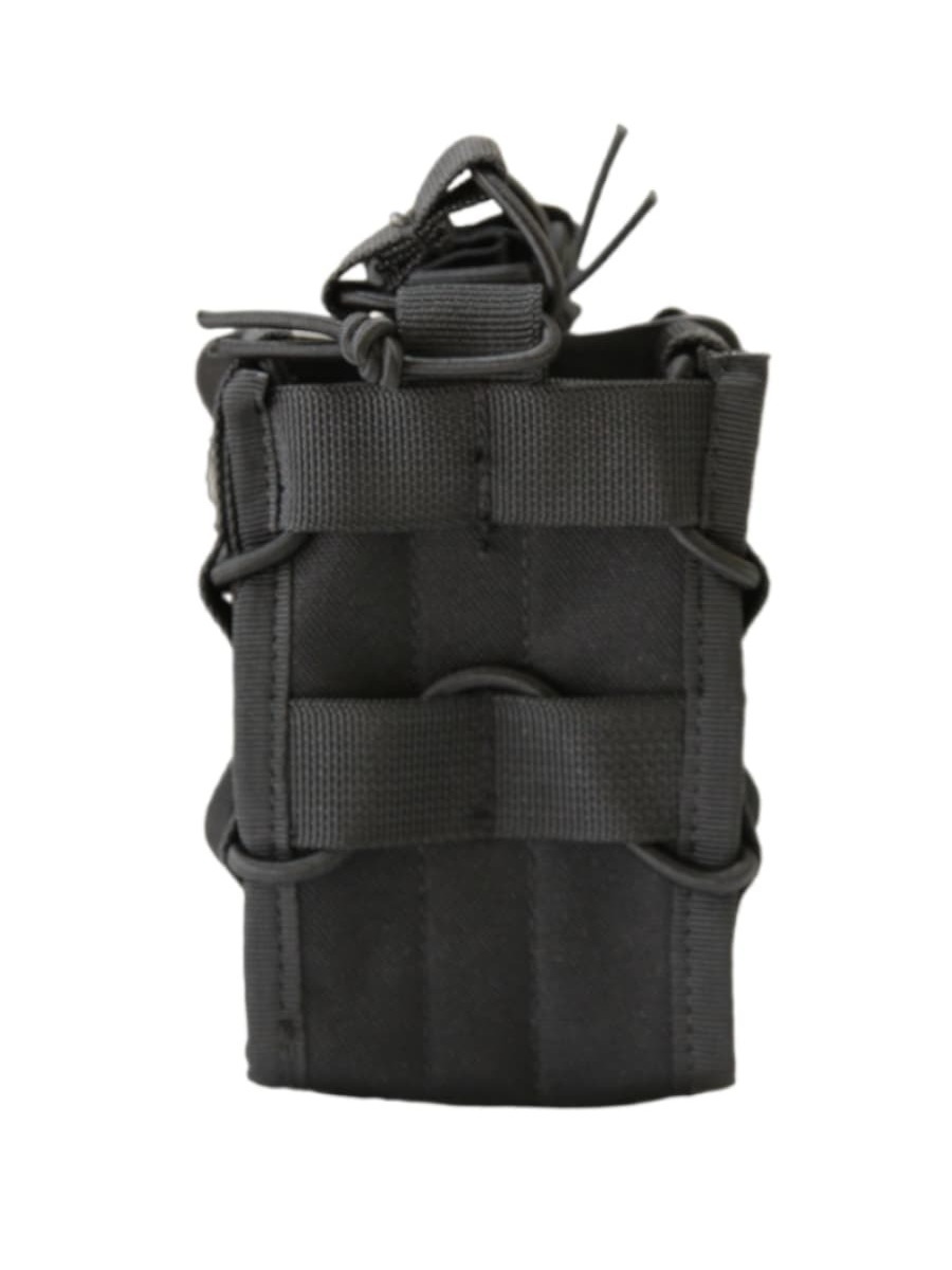 Подсумок крепится на совместимые стропы системы МОЛЛЕ и держится стабильно при активном движении. Открытый верх облегчает доступ к магазинам, поэтому подсумок удобно ставить под ведущую руку и использовать в динамике.