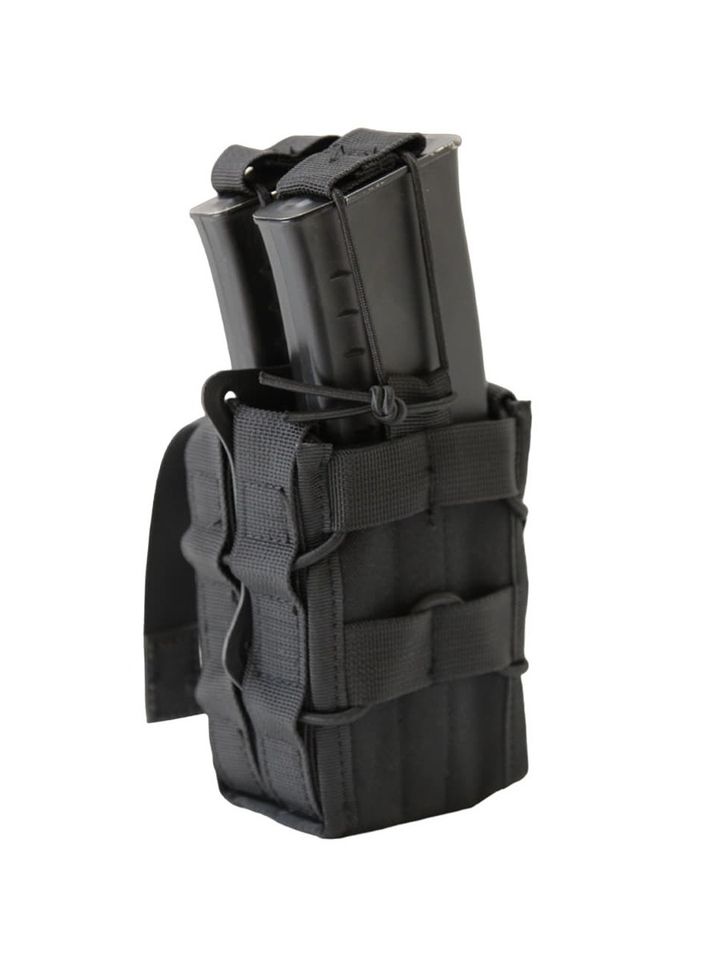 - Компактно размещает два магазина в одном месте, не перегружая экипировку.
