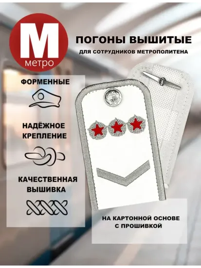 Погоны с белым цветом и тремя звездами на одной лычке – это аксессуар, который подчеркнет вашу принадлежность к метрополитену. Изготовленные из качественных материалов, погоны прочные и долговечные, сохраняя свой первоначальный вид даже при регулярном использовании. Классический дизайн с тремя звездами на лычке придает погонам строгий и профессиональный вид, делая их идеальным дополнением к форменной одежде. Погоны легко крепятся к любому виду одежды, позволяя вам с гордостью демонстрировать свою причастность к важнейшей сфере городского транспорта.