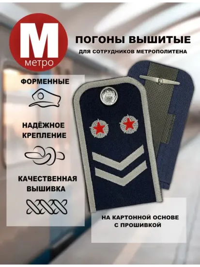 Погоны для сотрудников Метрополитена синие - это аксессуар, который подчеркнет вашу принадлежность к этой важной сфере. Выполненные из прочного материала с качественной вышивкой, погоны имеют классический синий цвет, что придает им строгий и презентабельный вид. Они станут незаменимым элементом вашей униформы, демонстрируя профессионализм и гордость за свою работу.