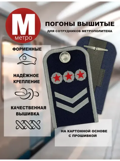 Погоны для сотрудников Метрополитена синие - это аксессуар, который подчеркнет вашу принадлежность к этой важной сфере. Выполненные из прочного материала с качественной вышивкой, погоны имеют классический синий цвет, что придает им строгий и презентабельный вид. Они станут незаменимым элементом вашей униформы, демонстрируя профессионализм и гордость за свою работу.