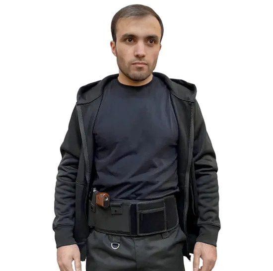 Изготовлен из неопрена, современного дышащего и водоотталкивающего материала, устойчивого к разрывам. Включает в себя кобуру для пистолета, несколько удобных отсеков для аксессуаров и снаряжения.