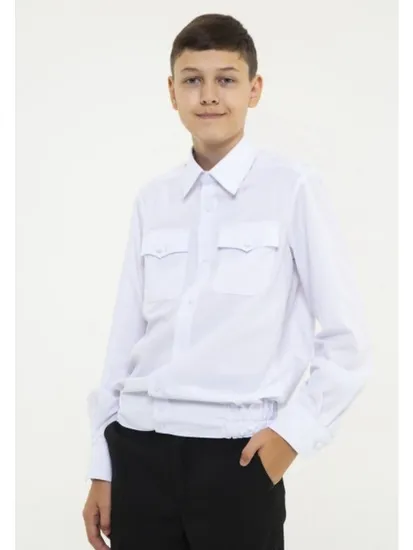 Рубашка белая кадетская на резинке длинный рукав (маленькие размеры) (А)