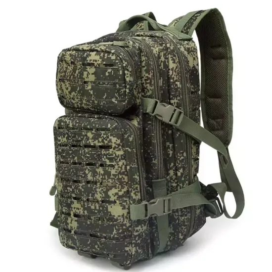 • На передней панели рюкзака 2 накладных кармана на молнии на которых стропы лазерной системы Molle. Внутри большого есть накладной карман с органайзером Отделения проклеены водоотталкивающей мембраной.