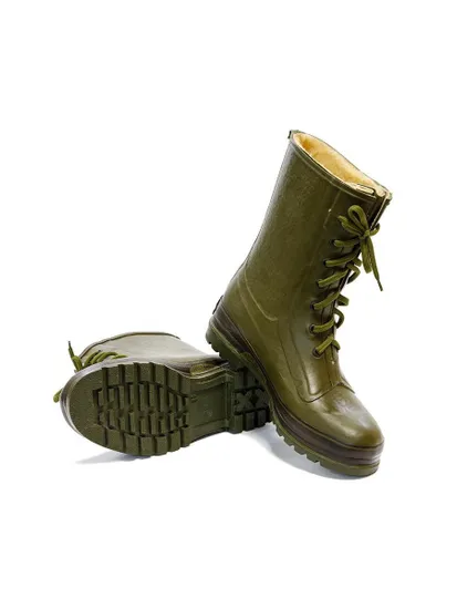 Укороченные резиновые сапоги Tigar 21366 «Балканский охотник» подойдут для холодной погоды, которая сопровождается дождями и мокрым снегом. В них будет удобно передвигаться по грязи, а мех, используемый в качестве подкладки, обеспечит комфортное тепло в межсезонье и в зимний период. Сапоги надежно фиксируются на ногах шнуровкой. Увязнув в грязи, охотник или рыболов без потерь выйдет из неприятной ситуации, обувь останется на нем. Подошва устойчива к сгибаниям и скручиваниям благодаря встроенной в нее металлической пластине, что максимально снижает вероятность вывихов и получения других травм. Модель выполнена из резины. Для изготовления верха используются два вида каучука — натуральный и синтетический. Это придает изделию прочность и эластичность. Подошва обладает морозостойкостью. Она не теряет изначальных свойств при пониженных температурах. Глухой клапан не дает набиваться снегу и мусору (сухая трава, листья) внутрь обуви. Он же обеспечивает абсолютную герметичность, благодаря которой ноги всегда остаются сухими. Охотничьи сапоги обладают небольшим весом, в них будет удобно преодолевать большие расстояния. Упоры в зоне пятки позволяют снимать обувь без помощи рук.