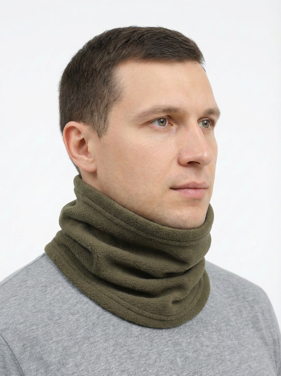 Флисовый уставной шарф-снуд в расцветке олива для защиты шеи и нижней части лица в холодную погоду.