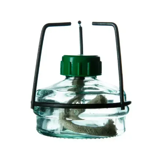 Стеклянная колба спиртовки СЛ-2 комлектуется металлическим держателем, втулкой, гнетом и фенопластов колпачко