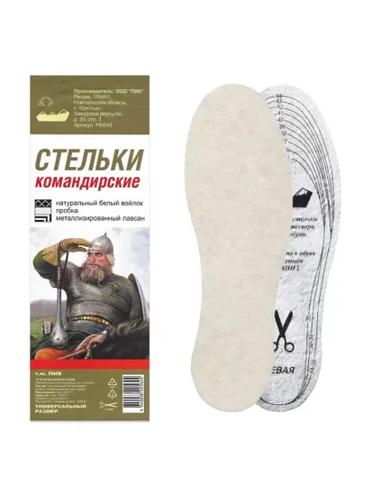 Стельки ПИК «Командирские» состоят из нескольких слоев: натурального белого войлока, пробки и металлизированного лавсана.